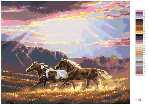 Paint by Numbers - HORSES RUNNING, MOUNTAINS AND SUNRISE (ABRAHAM