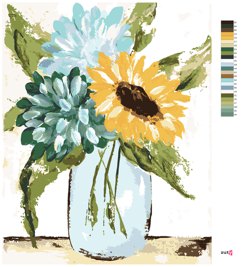 Paint by Numbers - HYDRANGEA AND SUNFLOWERS IN A VASE 2 (HALEY BUSH)