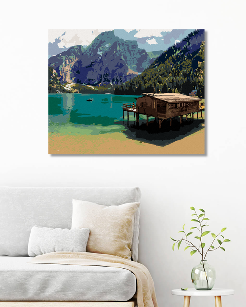 Paint by Numbers - LAKE LANDSCAPE IN LAGO DI BRAIES