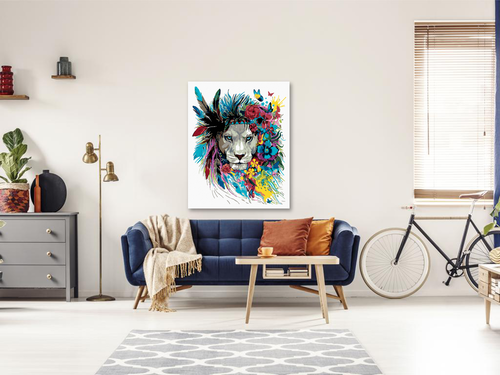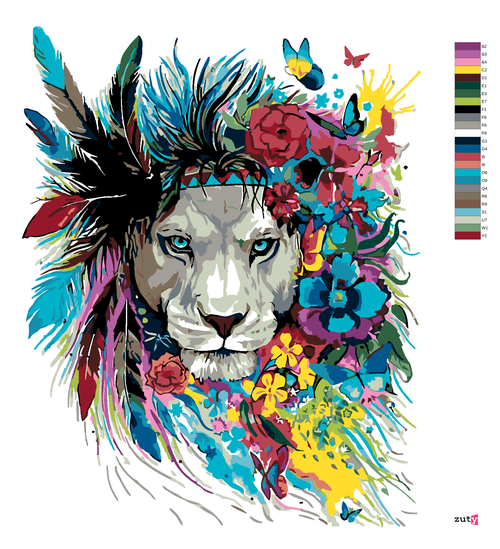 Paint by Numbers - LION WITH A HEADDRESS AND FLOWERS