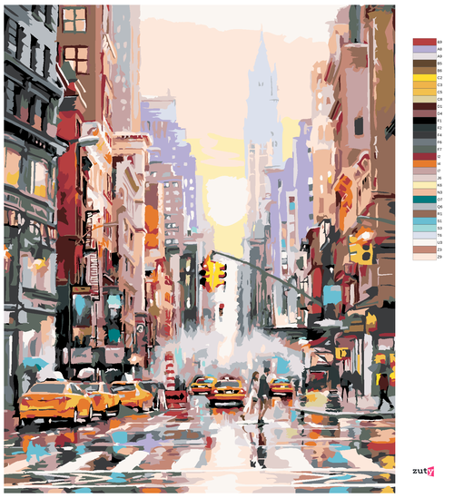 Dropship Paint by Numbers - NEW YORK STREET AND YELLOW CABS (RICHARD MACNEIL)