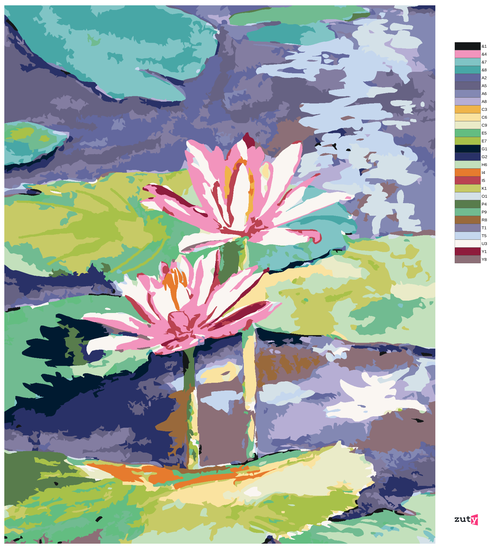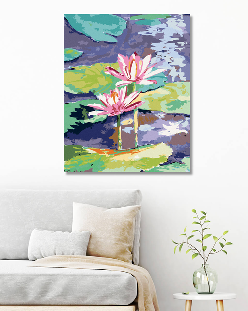 Paint by Numbers - PINK WATER LILIES IN THE POND