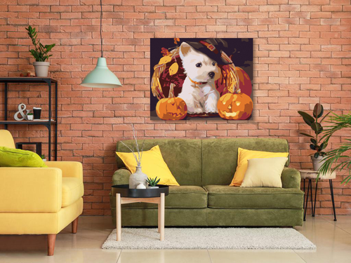 Dropship Paint by Numbers - PUPPY WITH PUMPKINS