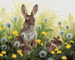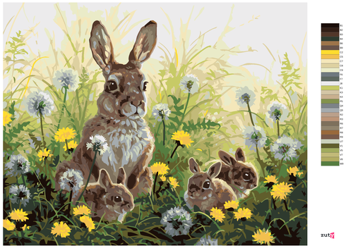 Paint by Numbers - RABBIT AND BABY RABBITS AND DANDELIONS (ABRAHAM