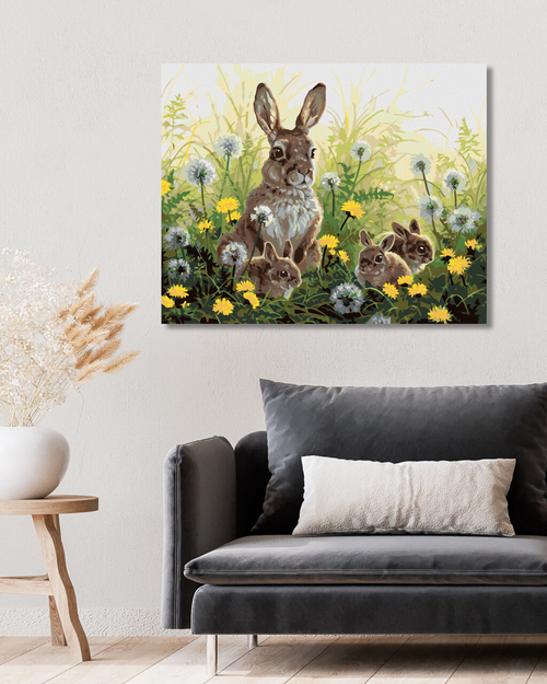 Dropship Paint by Numbers - RABBIT AND BABY RABBITS AND DANDELIONS (ABRAHAM