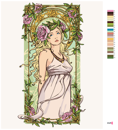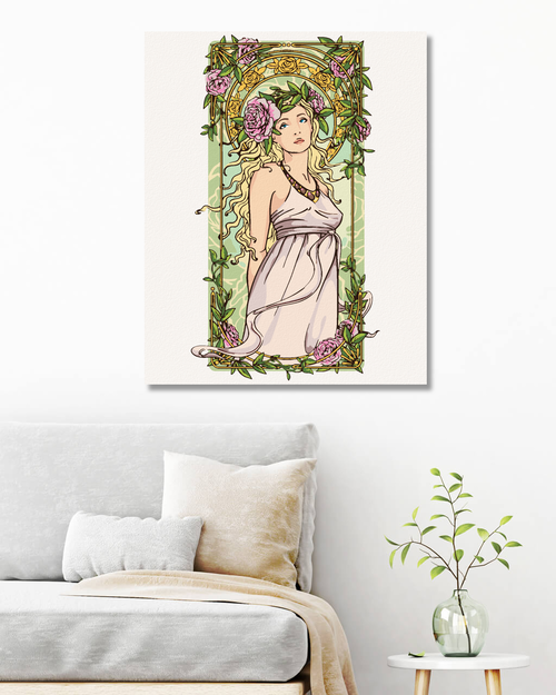 Dropship Paint by Numbers - REPRODUCTION WOMAN IN A DRESS AND ROSES (A. MUCHA)