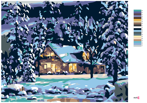 Paint by Numbers - SNOW-COVERED LOG CABIN IN THE WOODS