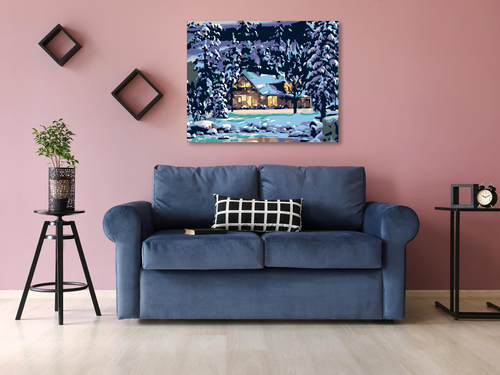 Dropship Paint by Numbers - SNOW-COVERED LOG CABIN IN THE WOODS