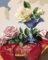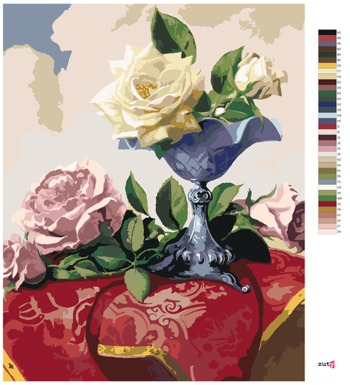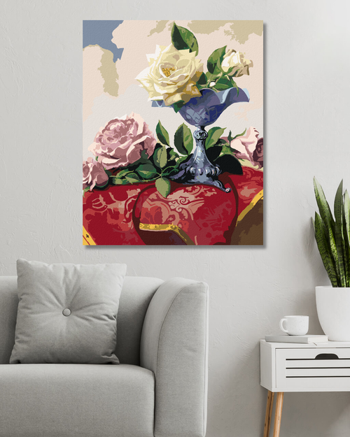 Paint by Numbers - STILL LIFE WHITE AND PINK ROSES ON A RED TABLECLOTH