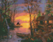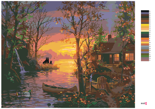 Paint by Numbers - SUNSET BY THE RIVER, BEARS, DUCKS AND A CABIN