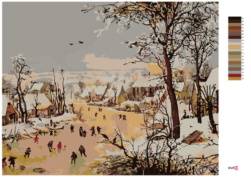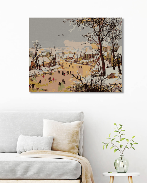Paint by Numbers -Winter Landscape with Ice skaters and Bird trap