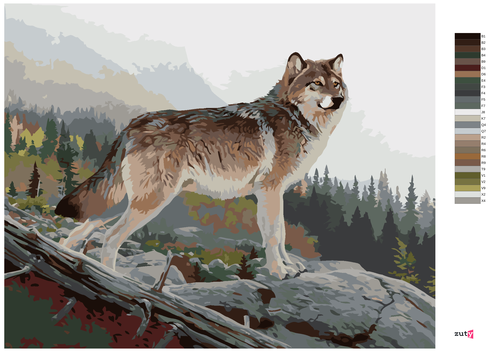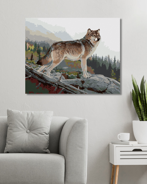 Dropship Paint by Numbers - WOLF ON A ROCK, A FOREST AND MOUNTAINS (AL AGNEW)