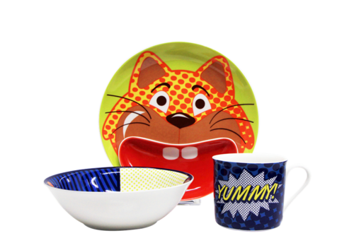 Porcelain Children Dinnerware set with a cute Pop Cat theme will certainly encourage each toddler to eat mealsÂ