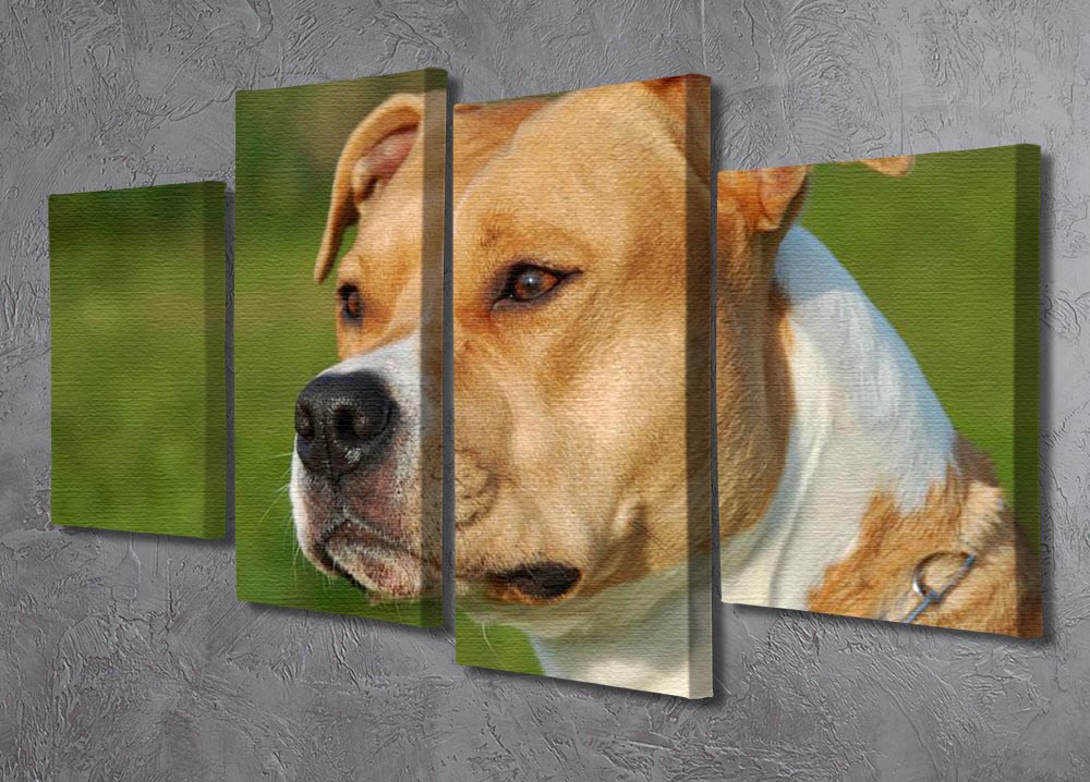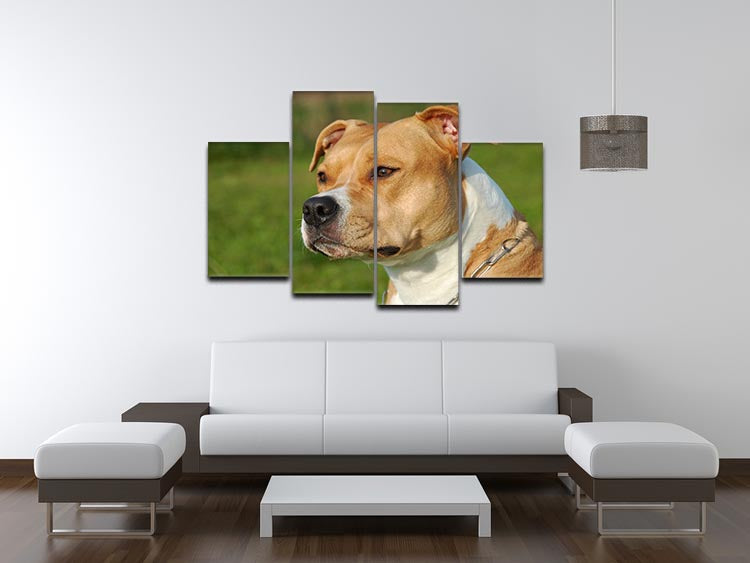 In summary, the Portrait of a beautiful female purebred American Staffordshire Terrier on a 4-split canvas is a stunning piece of art that combines beauty, versatility, and quality. It is an ideal choice for dog lovers and anyone looking to enhance their home decor with a unique and eye-catching artwork.