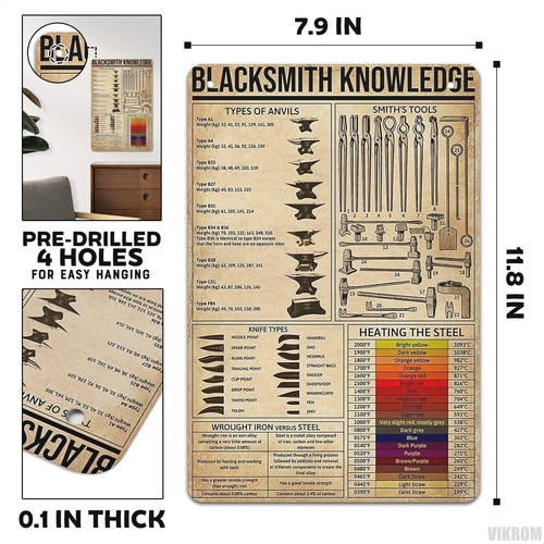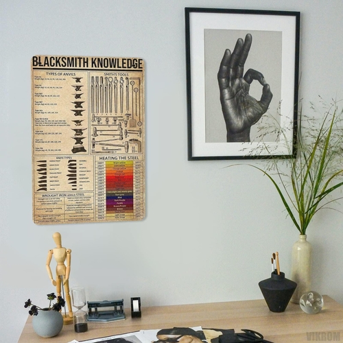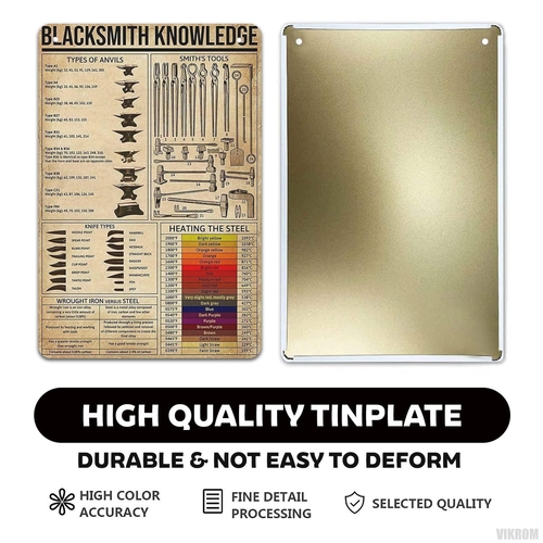 Application of Blacksmith Metal Sign Poster : Blacksmith forge kit for beginners knowledge poster is decorative signs. This blacksmith knowledge sign poster canbe used in any venue, wall decor, home blacksmith decor, garage metal signs vintage, coffee shop, any activity blacksmith gifts.