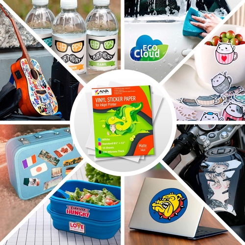 High-Quality Printable Vinyl Paper - set includes 15 white vinyl sheets of Printable Sticker Paper for printer, Matte finish. US Standard Letter Size - 8.5"x11". Suitable for High resolution and clear image quality