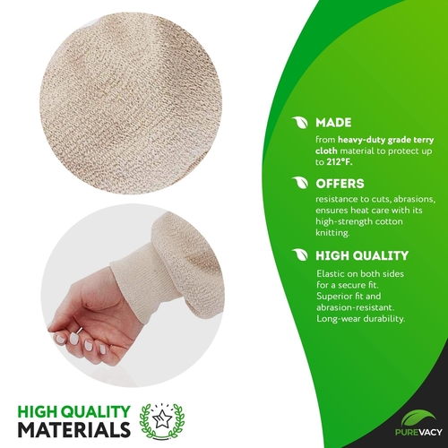 DURABLE TERRY CLOTH: These protective arm sleeves are made from terry cloth cotton of a high grade and are durable against high temperatures up to 212 F (100 ). The cloth of arm guards for thin skin is resistant to cutting and slicing by sharp objects.