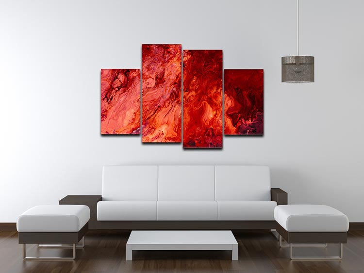 The rich hues of red and the intricate marble design evoke a sense of warmth and elegance. The flame-like patterns within the marble create a dynamic visual experience, making it a perfect centerpiece for living rooms, bedrooms, or offices. The 4-split design not only enhances the aesthetic appeal but also allows for creative arrangements that can adapt to various wall spaces.