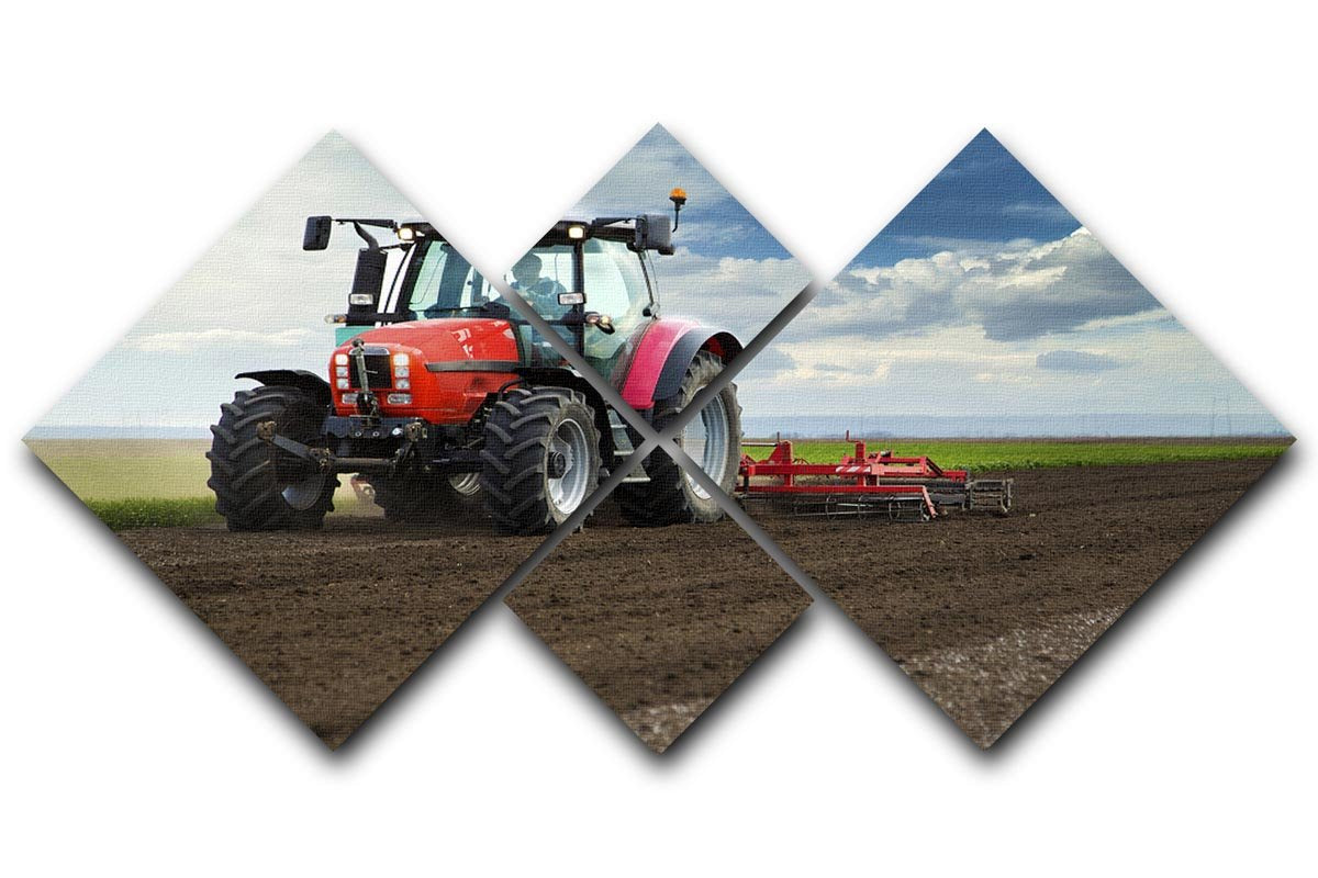 Dropship Red Tractor 4 Square Multi Panel Canvas