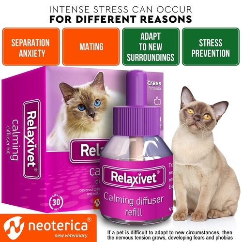 Relaxivet Natural Cat Calming Pheromone Diffuser Improved No Stress Formula Anti Anxiety Treatment #1 for Cats and Dogs with a Long Lasting Calming Effect