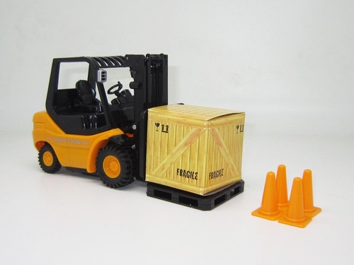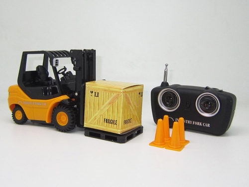 This is a fully-operational radio remote control forklift truck toy. Not only being able to move forwards/backwards or turn left/right just like other RC car toys, but also being able to lift the included crates or pallets by moving its fork arm up and down! It is a perfect gift for children and anyone who wants to experience being a mini forklift driver.