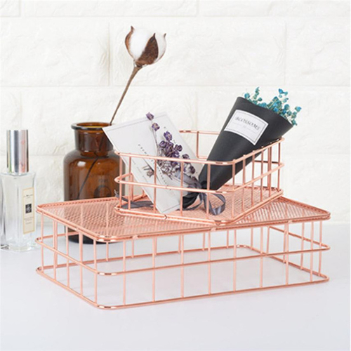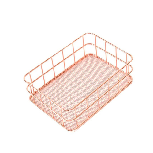 Dropship Rose Gold Metal Storage Basket Mesh Crate Vintage