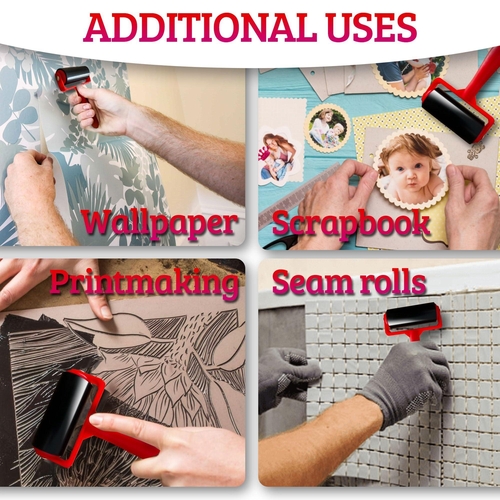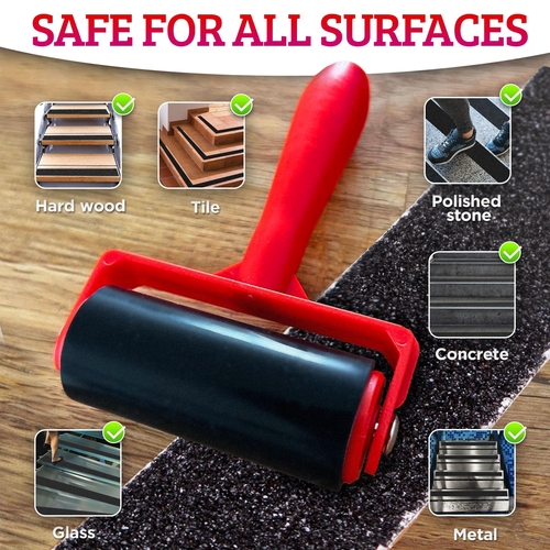 Features: The roller is made of high-quality rubber. It is strong and elastic. The handle is made of durable ABS plastic and has a non-slip ergonomic handle Easy to Use: The roller has simple structure, moves with ease and no need to press hard or work hard for the roller to move. Will give you comfortable Press feel and pleasant user experience Indispensable for any Anti Slip Tape: Simply cut out a piece of anti slip tape, peel the protective film, apply the tape on a clean surface and roll air by Rubber Roller High-Quality Roller: Is specially designed for sticking anti skid tape construction tools or stamping tools. However, the roller has a very wide range of uses, such as: inking blocks, scrapbook, wallpaper, printmaking, seam rolls etc.