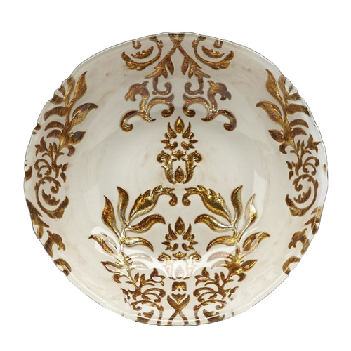 Dating back to the Byzantine period DAMASK is a style of weaving is reversible patterns on fabric. This pattern is brought to you in several colors on this bowl to fit all table settings at your most exclusive dinner parties or to enhance the beauty of your home design.