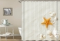 Neat bathroom curtains design. Virginal beach sand with beauty starfish and shells for a delicate bathroom style. Well-fit as a useful and decorative product in your elegant shower room, plentiful with cleanness feel.