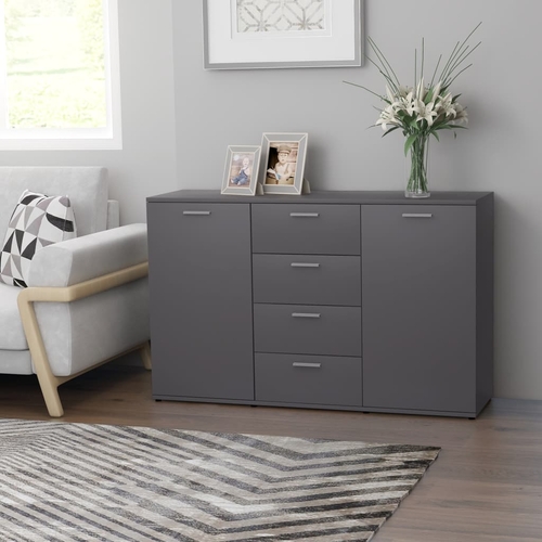 With 2 doors and 4 drawers, the sideboard provides ample storage space for books, multimedia appliances and other items. The sturdy tabletop is ideal for displaying decorative objects, photo frames, or potted plants. Thanks to the premium board material, this sideboard is stable and built to last. Additionally, the drawer cabinet is easy to clean with a damp cloth.