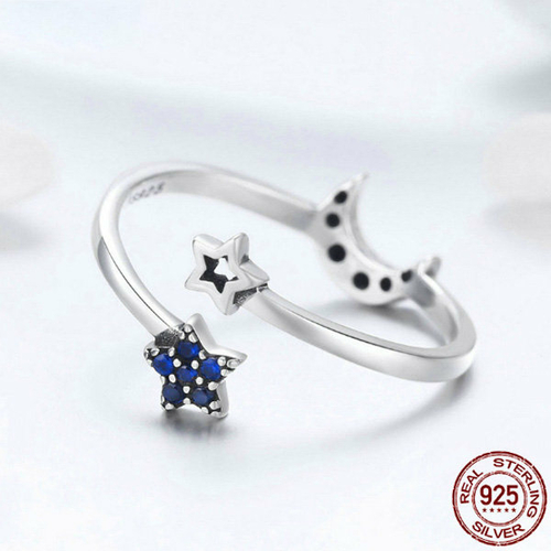 The moon and star come together to create something eye-catching. With its crystal blue centerpiece and small design, you'll enjoy wearing this Silver Moon & Star Ring everyday.