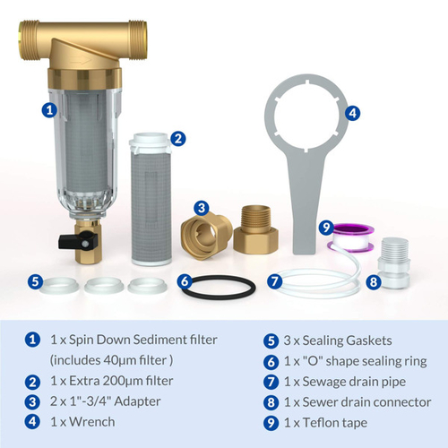 1 x Spin Down Sediment filter (includes 40|jm filter)