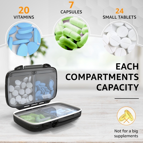 AIRTIGHT - Small pill box for purse is equipped with a silicone gasket that shields medications from moisture and dust. It provides secure storage for vitamins in environments with increased humidity, such as camping or the beach