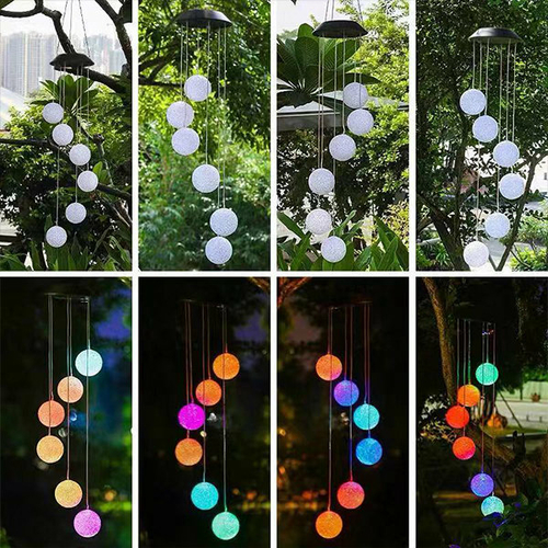 Fill the air with gentle chimes and in the evening enjoy the added glow of LED lights. The solar lights charge during the day and turn on automatically at night. This allows for hours of enjoyment of the Wind Chime without batteries.