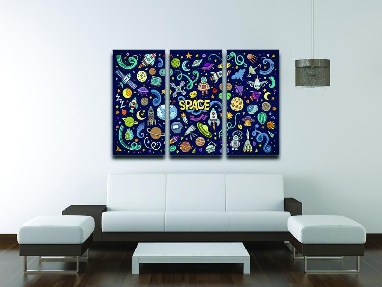 Transform your living space with the captivating Space Doodles 3 Split Panel Canvas Print. This stunning artwork is designed to enhance the aesthetic of any room, whether it be your living room, bedroom, or office. Each set includes three high-quality canvases that come together to create a cohesive and eye-catching design that draws attention and sparks conversation.