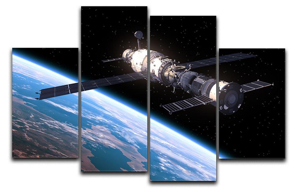 Introducing the Space Station In Space 4 Split Panel Canvas, a captivating piece of art that brings the wonders of the cosmos into your home or office. This unique artwork is divided into four equal sections, each functioning as a separate canvas. When displayed together, these panels create a cohesive and striking image that captures the imagination and adds a touch of elegance to any room.
