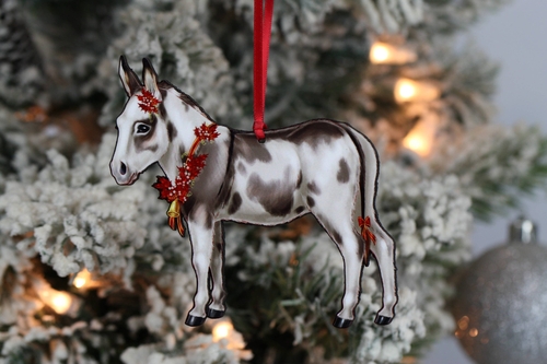 At Classy Equine, we understand that every customer has unique preferences. That's why we offer the option to request additional colors and coat patterns for your Miniature Donkey ornament. Whether you prefer a solid gray design or a different spotted pattern, we are happy to accommodate your requests to create a personalized ornament that fits your style.