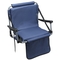Our premium stadium seat is built to last through High School football games, college games, baseball games and pro sporting events. This folding stadium chair features 600D polyester material and extra soft cushion, spring loaded bleacher hooks, chair back, arm rests, adjustable shoulder strap, padded back rest, padded leg rest, convenient storage pocket, durable metal tube frame, and 2 heavy duty squeeze buckles to keep seat securely closed for storage and carrying. Stadium chair back measures 16-1/2î x 15-1/2î, seat cushion measures 16-1-2î x 14î. This stadium chair is only 4" thick when folded up and snapped closed making carrying and travel with this stadium chair quick, effortless and easy on the back. Available in Black or Blue.