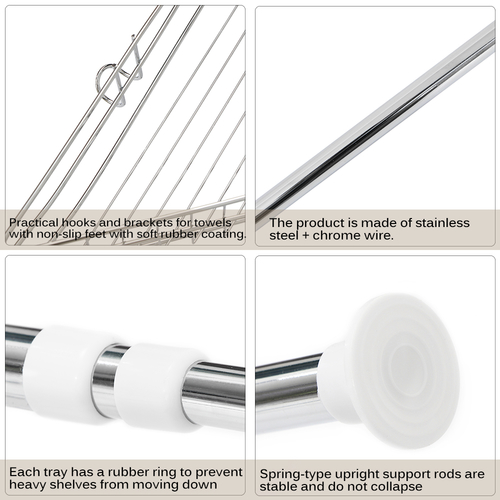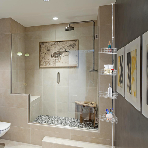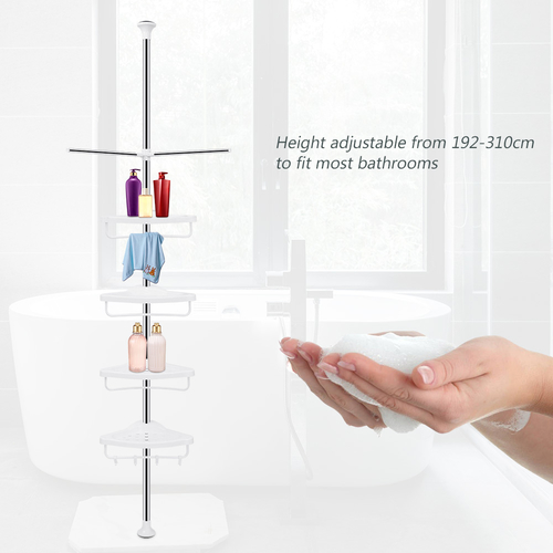 Adjustable, rust-free pole uses tension to fit between your bathroom floor and ceiling,tension mounted for easy assembly with no tools or drills required.