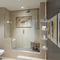 The spring-loaded upright support bar automatically adjusts to fit between the ceiling and the floor or ceiling and edge of the bath.