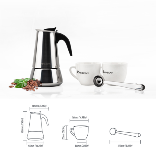 【Gift Package】 Moka pot with 2 cups and 1 spoon,full set for coffee making! Perfect for Gifting to the coffee lover in your family or friend group. Easy to carry. It is made of high-quality and lightweight materials, can be easily stuffed inside your bag or luggage.