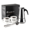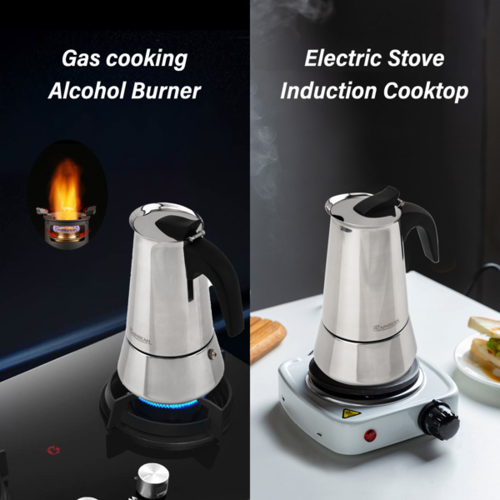 【HIGH QUALTIY AND SAFE】We understand that "quality" is carried in the stainless steel and in the espresso coffee,we are excited to make the best espresso machines to ensure that every drop pleases your tastes.The entire Moka Pot was crafted for a long lifetime of coffee with you. High quality sealing prevent water from leaking or spilling,temperature resistant knob and handle that allow for easy, safe pouring.