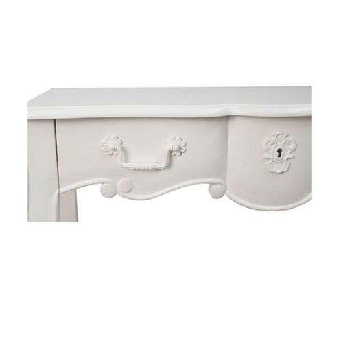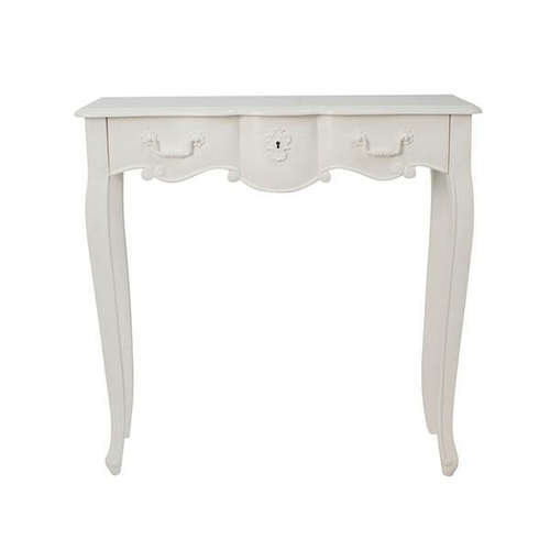 Pretty white painted Console Table with drawer and pretty lock detail. Elegant Queen Anne leg ensures the look is timeless. Handy size: can be used in all manner of tight spots. This item is flatpacked.