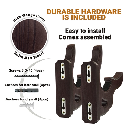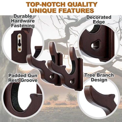 [Universal Compatibility] Dimensions: 20x17.5x4.5 cm (7.9x6.9x1.8"). Inner hook width: 5.5 cm/2.2. Gun Rack is a unique and stylish way to proudly display your favorite weapon. [Artistic Design] Its elegant, beautifully crafted,curved Branch design will add style to any decor while keeping your weapons organized and within easy reach when you need them most! Gun Rack designed to store your guns safely and securely. [Real Hardwood]This Gun Rack is made of high-quality solid wood covered with a classic Deep Brownfinish that complements any room.Hooks are covered with felt for fixation and to give your gun the protection it deserves. [Supreme Craftsmanship] The Rack is made from high quality materials, so you can rest assured that they will last for years.Make your riffle an expensive compliment to the interior. [Great Gift Idea] Gun Rack is an excellent gift for any occasion, whether it be for a Birthday, Christmas, Fathers Day, Gift for Grandfather, Gift for Dad, Gift for Boyfriend, Gift for Huntsman, Gift for Him or other special days!