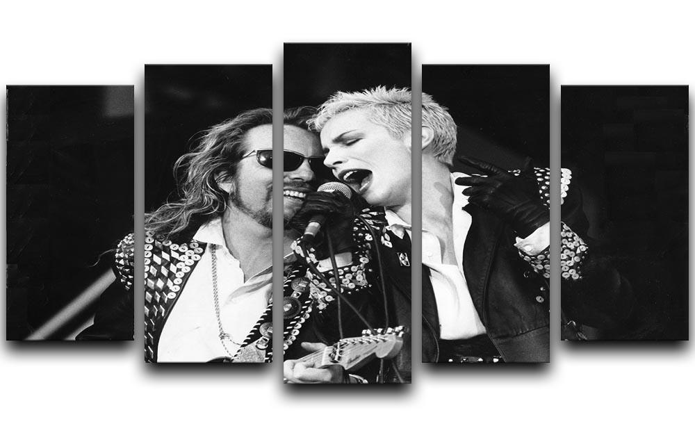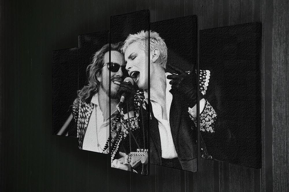 The Eurythmics live 5 Split Panel Canvas is a unique and captivating piece of art that brings a touch of musical nostalgia to your home or office. This artwork is divided into five separate panels, each contributing to a cohesive and striking image that celebrates the iconic band, The Eurythmics. Whether you're a long-time fan or simply appreciate beautiful art, this canvas is sure to make a statement.