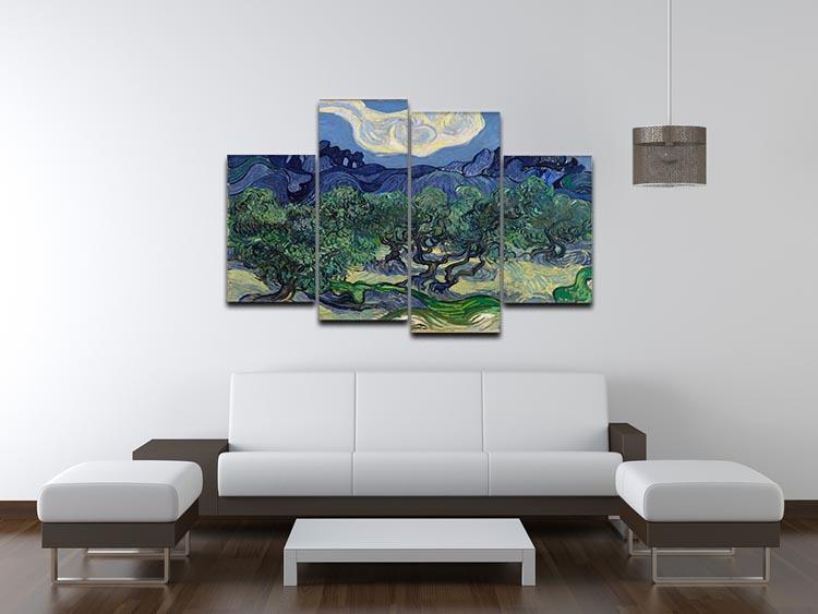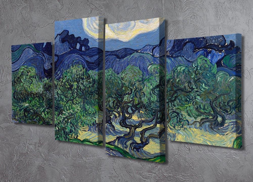 The Olive Trees 4 Split Panel Canvas artwork featuring lush green olive trees in a serene landscape, divided into four equal panels.