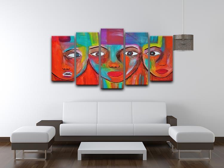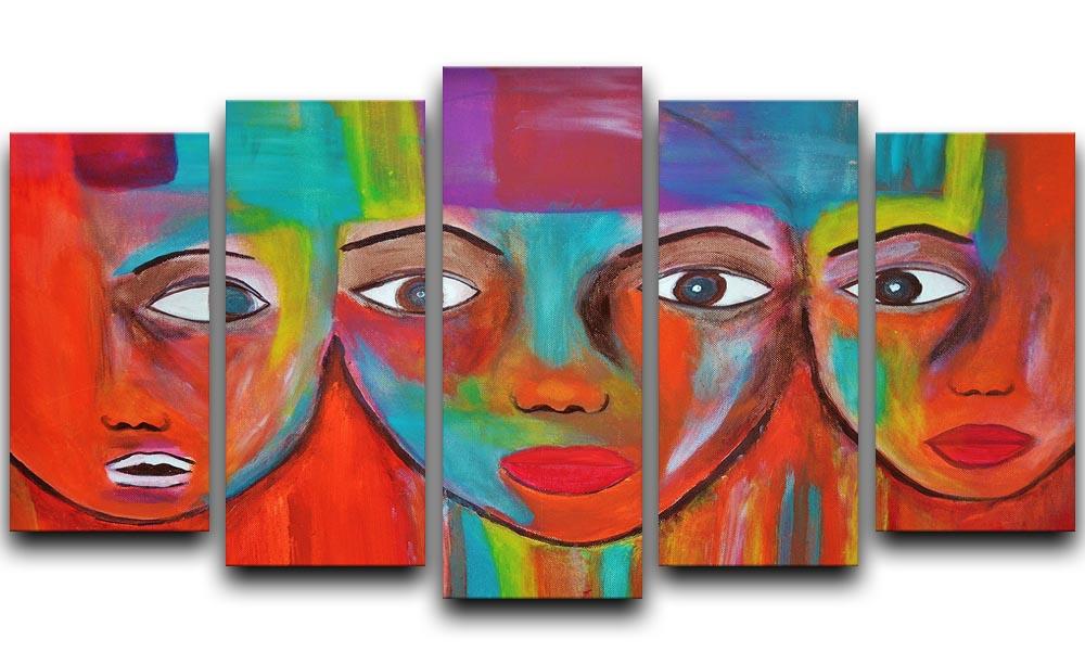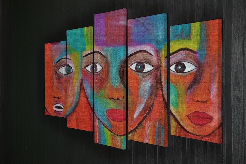 The Red Faces 5 Split Panel Canvas artwork featuring five panels with striking red faces, creating a dynamic and engaging visual display.