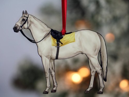 In summary, the Thoroughbred Race Horse Ornament in white/light gray is a perfect blend of artistry, quality, and functionality. Whether you’re decorating for the holidays or looking for a special gift for a horse lover, this ornament is sure to delight and inspire. Don’t miss the chance to add this exquisite piece to your collection or gift it to someone special!