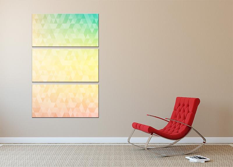 Triangular Polygons 3 Split Panel Canvas Print showcasing geometric patterns in vibrant colors, perfect for modern decor.