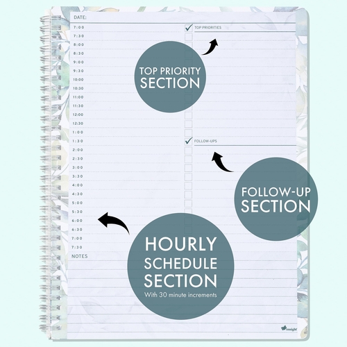 Embrace Elegance: This daily undated planner with a simple yet stunning floral cover is Perfectly Sized at 11 x 8.5 inches for On-the-Go Planning and organizing.